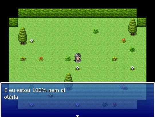 O jogo tem uns cinco minutos, é bem simples mesmo. Não tem efeitos sonoros porque eu não gosto das músicas do VX, só a do game over, e não compensaria ir atrás de músicas pra um jogo de zueira. Os gráficos são do VX mesmo, não é nada incrível e bonito, ainda sou bem ruim mapeando. E não tem nenhum desafio, é só apertar espaço pra passar as falas e andar pra frente. Todos os erros de português são extremamente propositais.