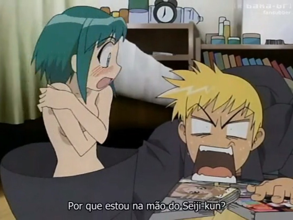 Como no gênero tinha ecchi, fiquei com um pouco de medo de ser um anime com muito fanservice besta, mas não é não. É bem "discreto", digamos. Tipo, mostram peitos, por exemplo, mas os peitos ficam normais, não é igual outros animes onde eles ficam balançando e fazendo "boing boing", e essas coisas bestas. Aparecem mulheres nuas, mas normais.
